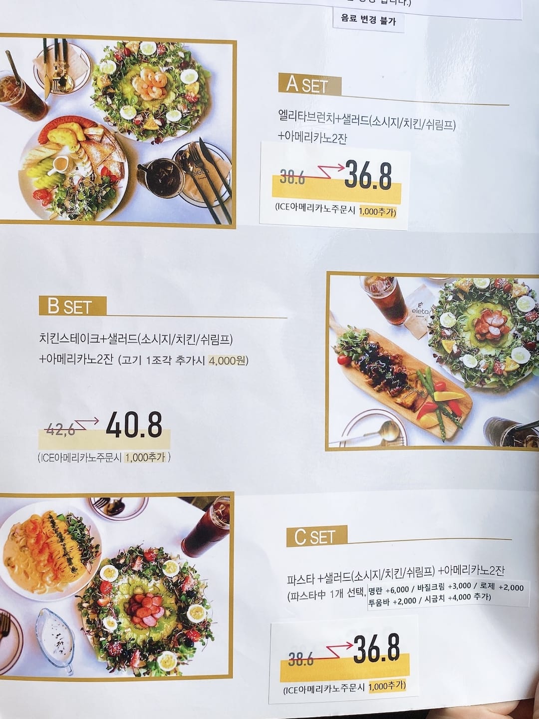 나름 음료는 저렴해보입니다. 엘리타 카페 입장에서는 음료만 주문하는 손님이 별로 반가울 것 같지는 않아 보입니다. 특히 손님이 몰리는 요일과 시간대에 눈치 보지 않고 시간을 보내려면 1인 1 메뉴는 필수인 듯하네요. ^_^