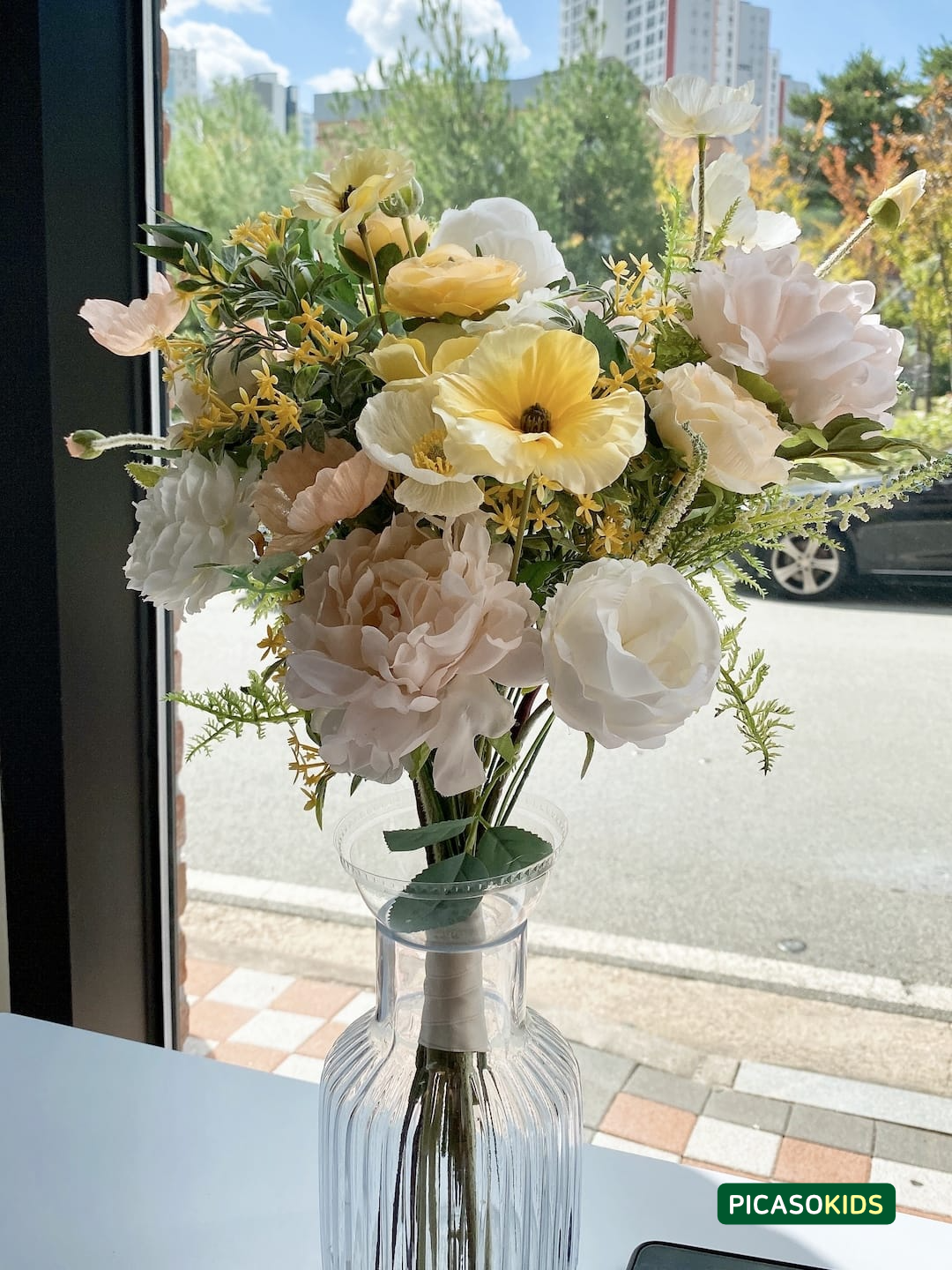 브런치 카페 엘리타를 처음 방문하는 사람이라고 티 내는 것처럼 촌스럽게 이 곳 저 곳을 돌아다니며 스마트폰 카메라를 연신 눌러댔습니다. 그중에서 제일 눈길을 끄는 곳은 '플라워석'이었네요.