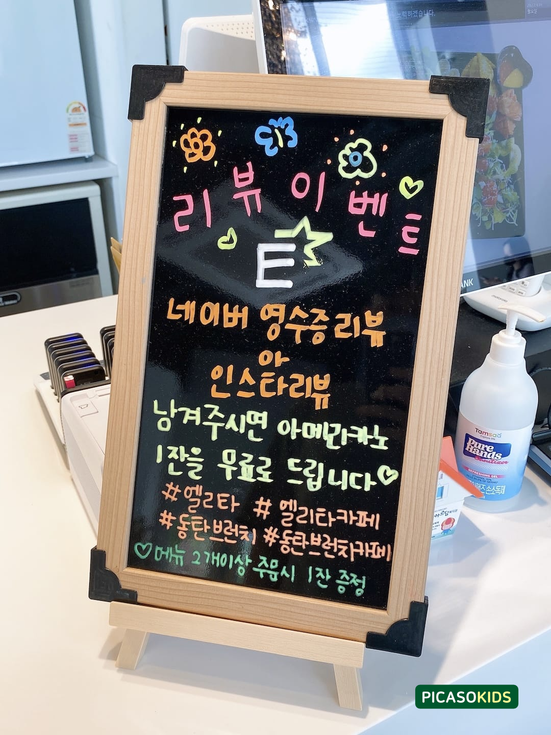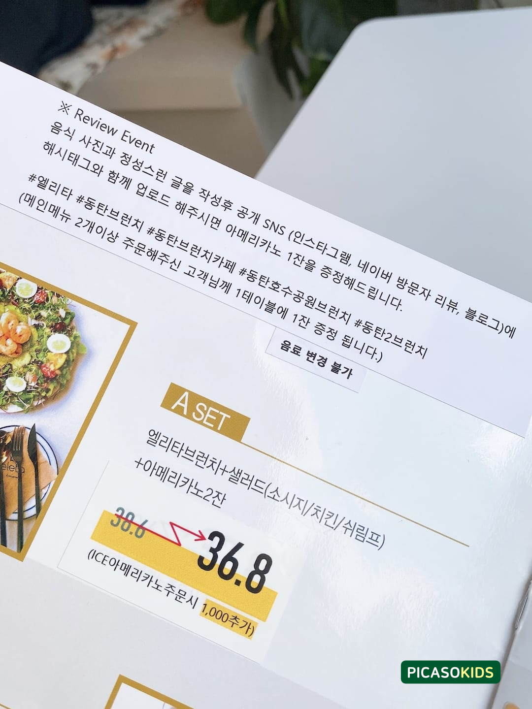 인테리어와 메뉴 모두 인스타 사진을 찍으면 예쁘게 나오게끔 세팅을 잘 해 놓은 #동탄브런치카페 #엘리타 에서 리뷰 이벤트를 안 할 리 없었습니다. 아메리카노 한 잔을 투자하면 그 이상의 홍보 효과를 볼 수 있으니까요. 당연히 저도 참여했습니다.