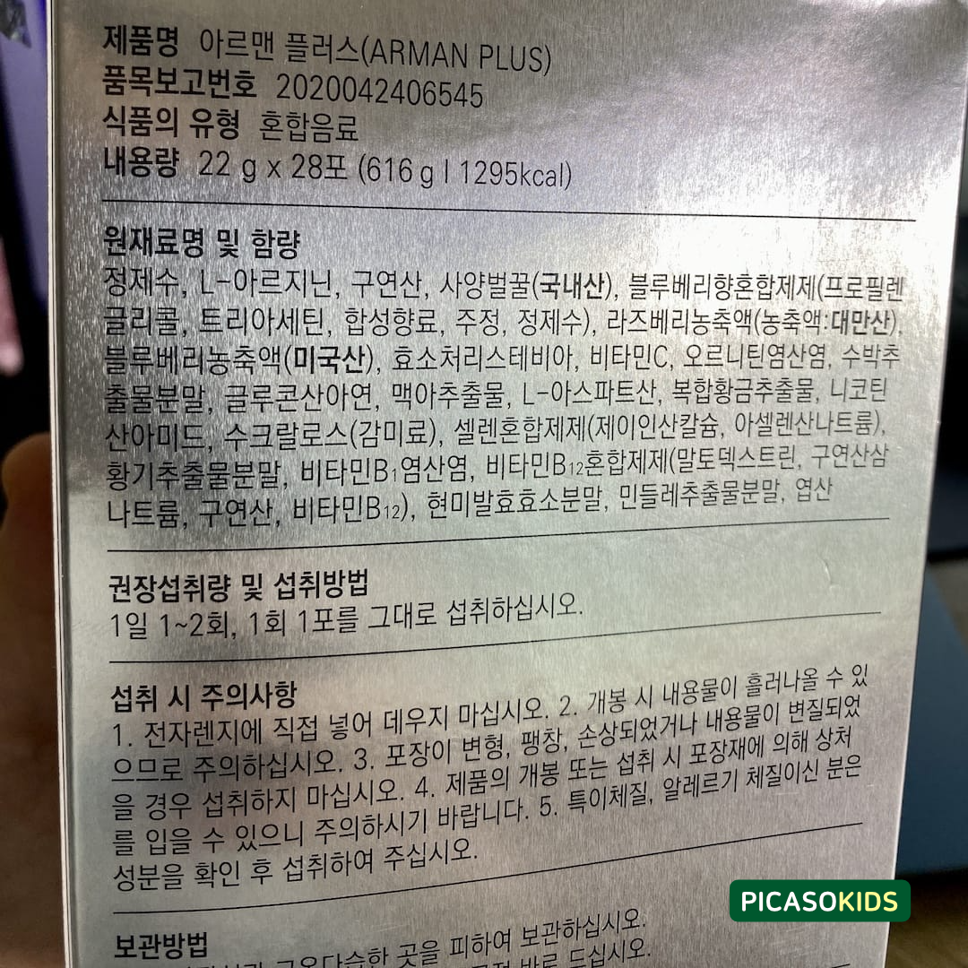 저는 아르맨 플러스라는 제품을 먹고 있습니다. 이 식품의 유형은 아르기닌의 효과, 효능이 식약처로부터 입증되어 건강기능식품으로 판매되는 것이 아닌 일반 혼합음료입니다.