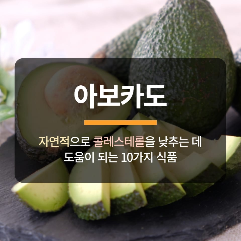 아보카도는 단일 불포화 지방과 다가 불포화 지방의 좋은 공급원으로, 적당히 섭취하면 콜레스테롤 수치를 낮추는 데 도움이 될 수 있습니다. 임상 지질학 저널에 발표된 한 연구에 따르면 하루에 아보카도 한 개를 섭취하면 LDL 콜레스테롤 수치를 최대 13.5%까지 낮출 수 있는 것으로 나타났습니다. 아보카도는 요리할 때 마요네즈나 사워 크림 대신 사용하거나 스무디에 첨가하여 건강한 지방을 더욱 풍부하게 섭취할 수 있습니다.
