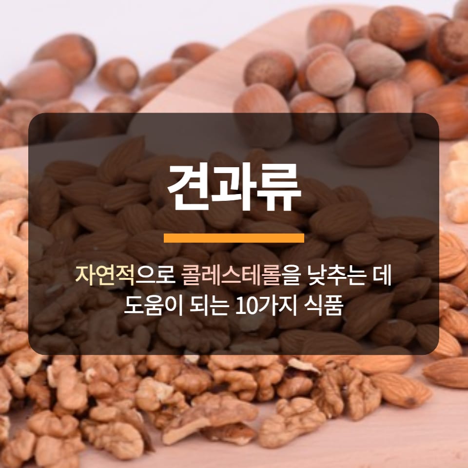 견과류에는 단일 불포화 지방과 다중 불포화 지방이 풍부하여 적당히 섭취하면 콜레스테롤 수치를 낮추는 데 도움이 될 수 있습니다. 미국 임상 영양학회지에 발표된 연구에 따르면 하루에 약 1.5온스의 견과류를 섭취하면 LDL 콜레스테롤 수치를 최대 5%까지 낮출 수 있는 것으로 나타났습니다. 아몬드, 호두, 피칸, 헤이즐넛 등이 좋은 견과류 옵션입니다.