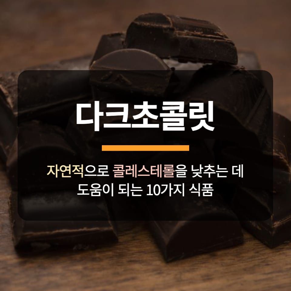 다크 초콜릿에는 심장병 위험을 줄이는 등 다양한 건강상의 이점이 있는 것으로 밝혀진 플라보노이드가 함유되어 있습니다. 영양학 저널에 발표된 한 연구에 따르면 하루에 약 50g의 다크 초콜릿을 섭취하면 LDL 콜레스테롤 수치를 최대 10%까지 낮출 수 있는 것으로 나타났습니다. 그러나 다크 초콜릿은 여전히 칼로리와 설탕 함량이 높기 때문에 코코아 함량이 높은 다크 초콜릿(70% 이상)을 선택하고 적당히 섭취하는 것이 중요합니다.