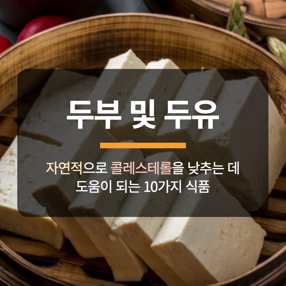 두부 및 두유와 같은 콩 제품에는 식물성 단백질과 이소플라본이 풍부하여 LDL 콜레스테롤 수치를 낮추는 데 도움이 될 수 있습니다. 에 따르면 에 발표된 연구에 따르면, 하루에 약 25g의 콩 단백질을 섭취하면 LDL 콜레스테롤 수치를 최대 5%까지 낮출 수 있다고 합니다. 좋은 콩 식품으로는 완두콩, 템페, 콩 견과류 등이 있습니다.